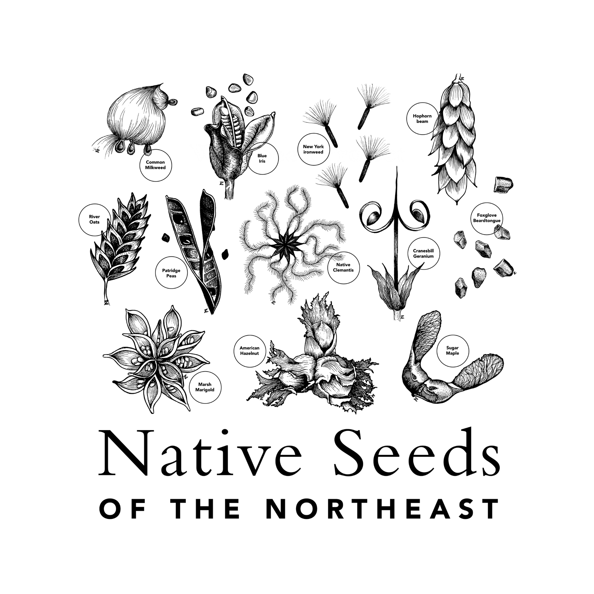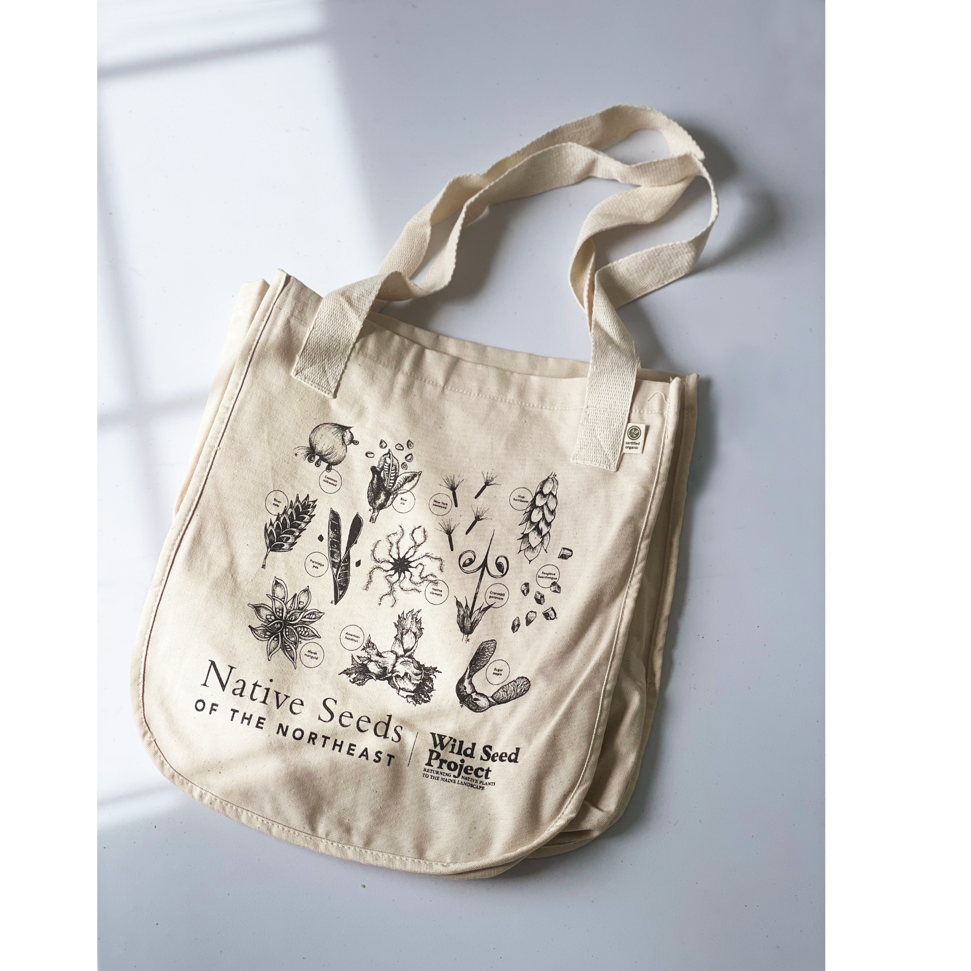 Soft and stylish canvas tote printed locally in Portland, ME at Little Chair Printing with custom seed designs by Isabella Zoe Ciolfi featuring native seeds of the northeast.