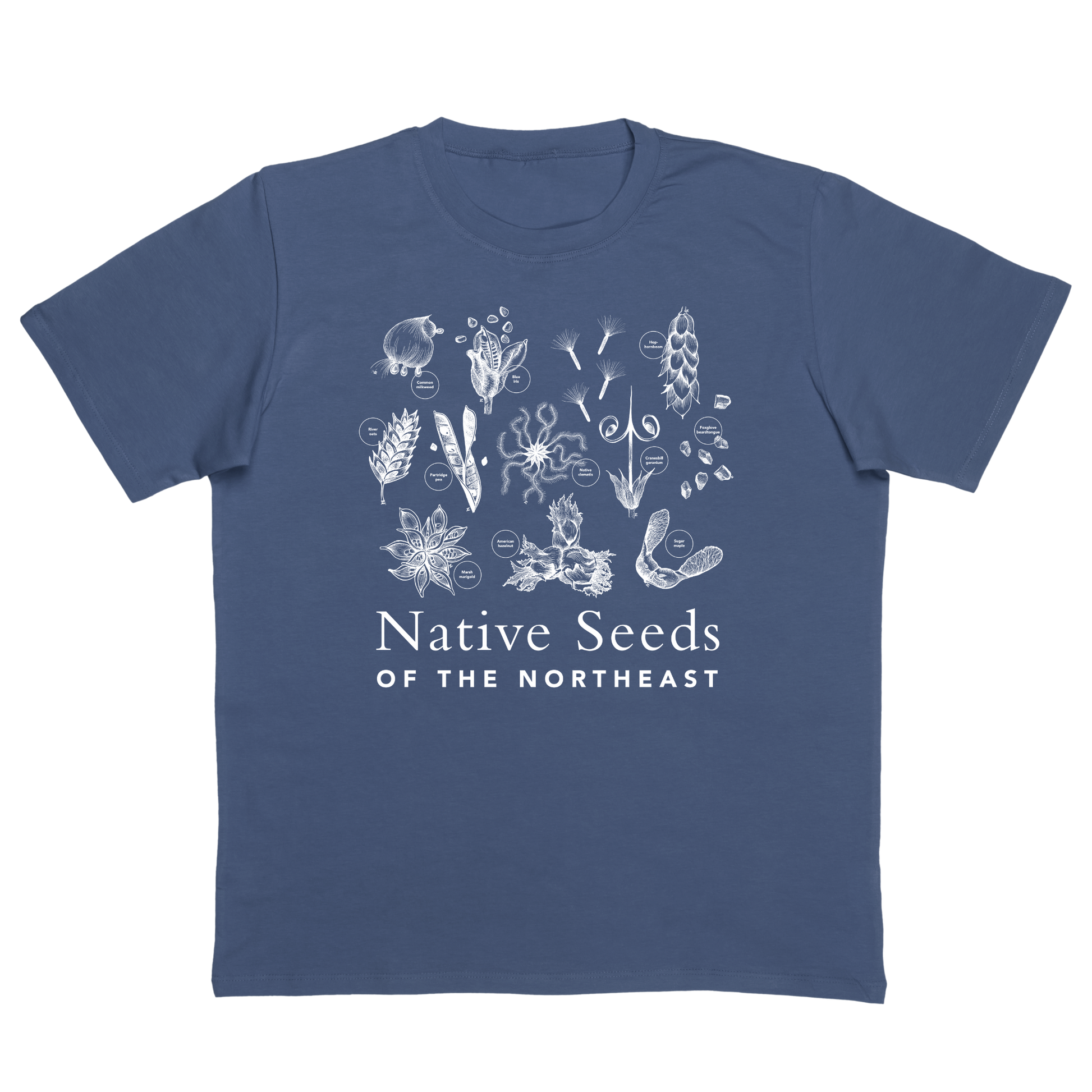 New! Native Seeds of the Northeast shirts screen printed locally in Portland, ME at Little Chair Printing with custom seed designs by Isabella Zoe Ciolfi.
